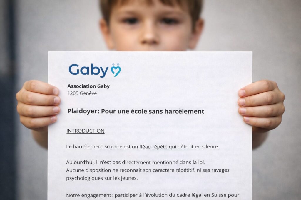 Un projet de plaidoyer mené par l’Association Gaby pour faire évoluer les législations cantonales sur le harcèlement scolaire, en s’appuyant sur des données dédiées à la protection et au bien-être des jeunes.